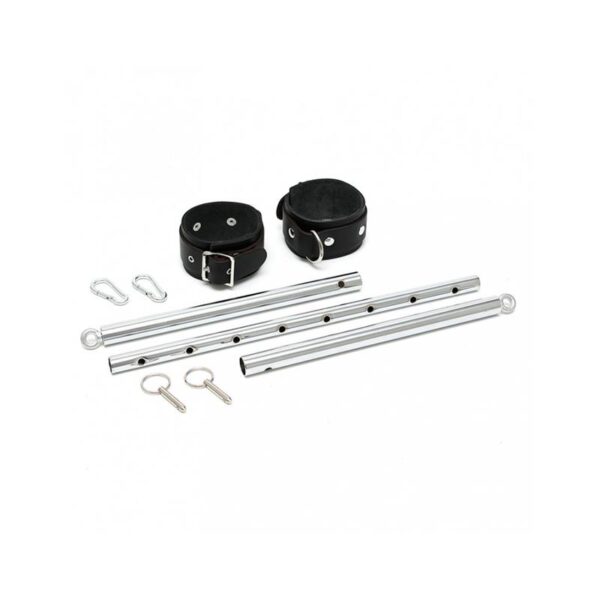 This silver metal separation bar has adjustable leather cuffs you can easily hook thanks to its buckles. You can adjust the bar up to 8 positions, from 55 cm to 85 cm.