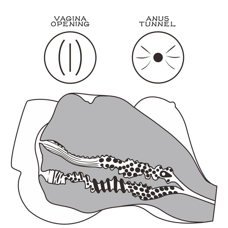 Her vaginal tunnel features a series of nubs to increase pleasure as you slide deep inside her. At the same time it has a much narrower anal opening full of numerous curves.