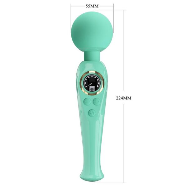 This sophisticated massager features an exceptionally powerful motor and a broad head, with a flexible neck to help you direct the 10 vibration modes and 9 speed levels exactly where you want them most. Its body is compact for a comfortable grip and very lightweight. It has an easy-to-use digital LCD screen that shows your settings and battery level.