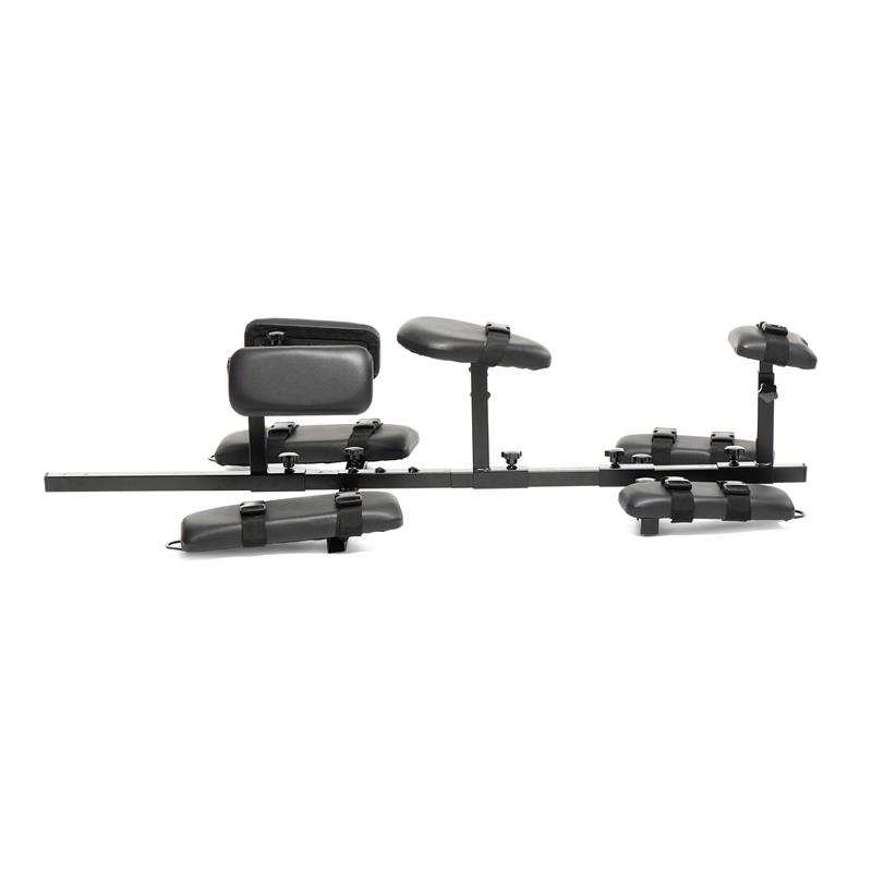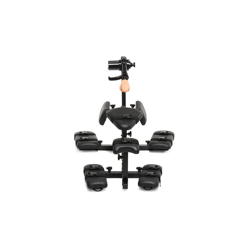Note: Use the dildo only with water-based lubricants. The chin rest, arm pads, torso pad, and sex machine support are all lengthwise adjustable along the main shaft. The leg pads are fixed to the main arm and are not adjustable.